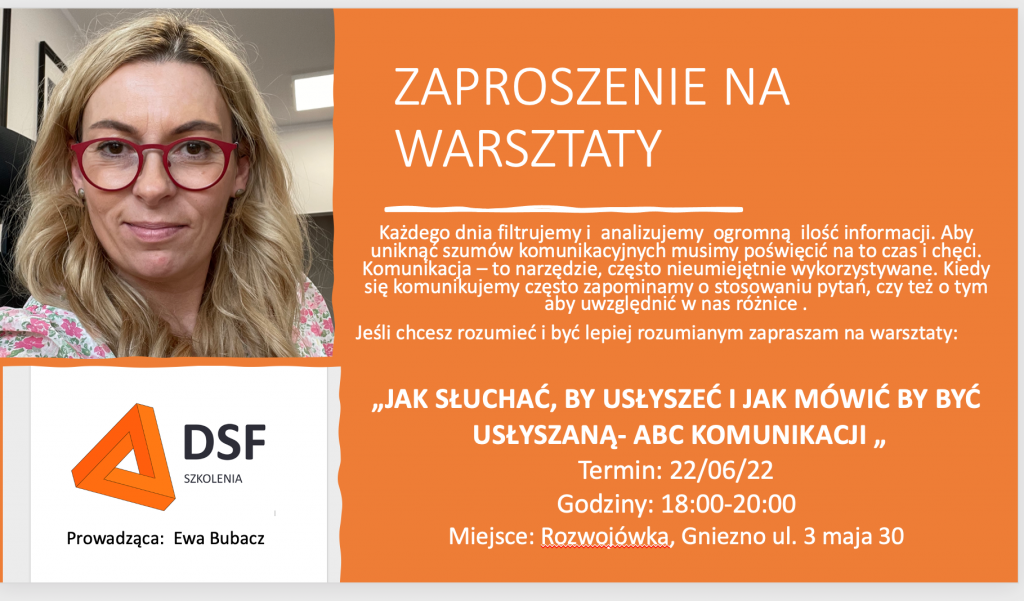 Zapraszam Ciebie na warsztaty: Rozwojówka Gniezno 22.06.22 r.