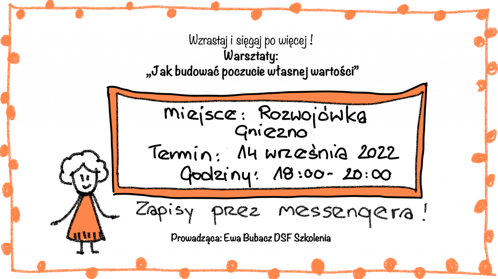 Informacyjnie kilka słów na temat zbliżających się warsztatów, które tradycyjnie już odbędą się w Rozwojówka – Marta Bartkowiak 14/09/22 (środa).