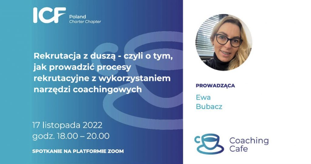 Zapraszam Ciebie na warsztaty w Poznaniu. W ramach Coaching Cafe poprowadzę spotkanie pod tytułem Rekrutacja z duszą- czyli o tym, jak prowadzić procesy rekrutacyjne z wykorzystaniem narzędzi coachingowych. Organizatorem spotkania jest ICF Oddział Poznań. Szczegóły znajdziesz tutaj: https://icf.org.pl/produkt/rekrutacja-z-dusza/